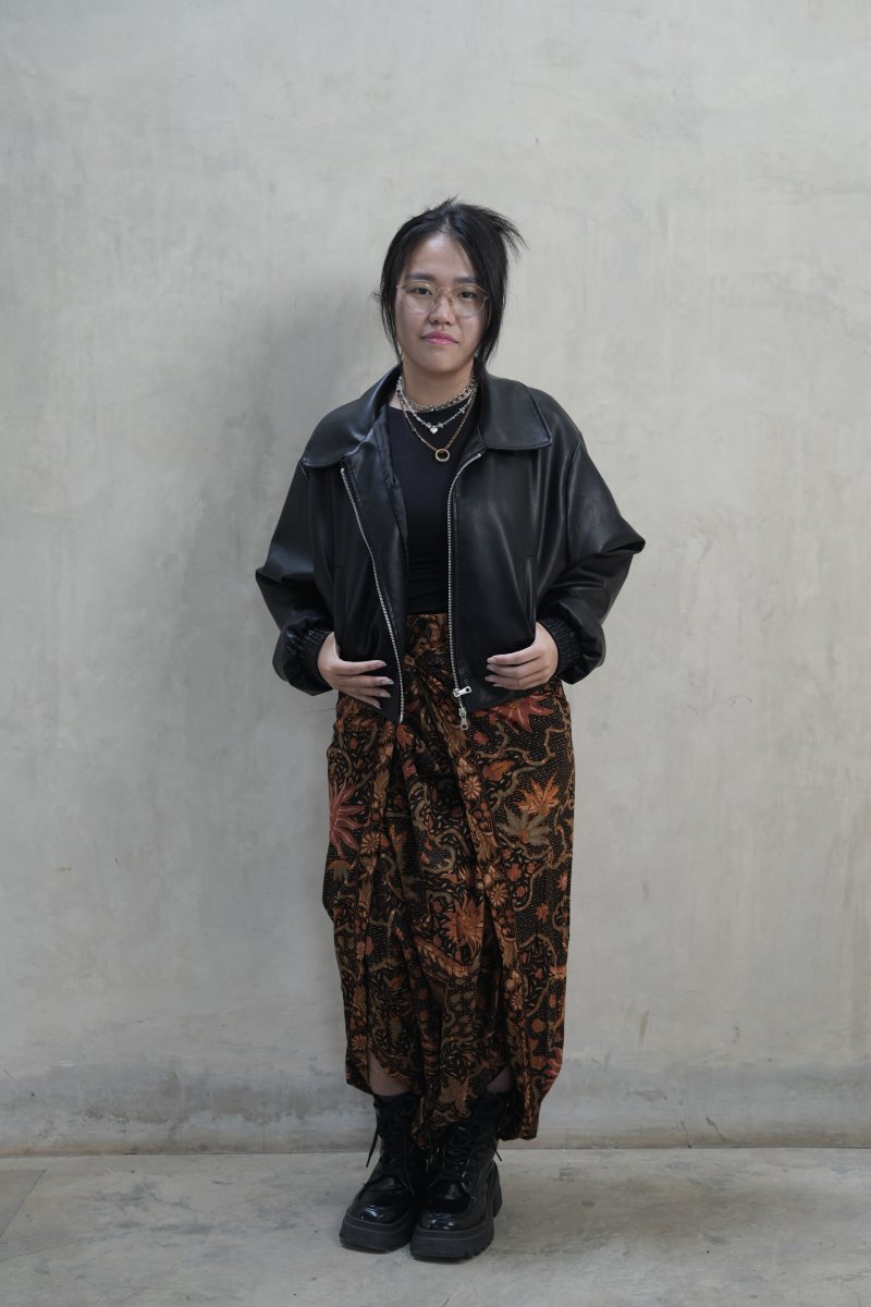 Gabriel Marcella Budiono is a 2023 graduate of ESMOD Jakarta's International Diploma of Fashion Design and Creation, with a practice rooted at the intersection of traditional Indonesian craft and contemporary design. Her technical foundation spans flat and draping pattern-making for womenswear and menswear, tech-pack detailing, batik, fabric handprinting, and embellishment work, complemented by professional experience as assistant designer at House of Pinky, fitter and representative at Semarang Fashion Trend, Spotlight IFC (Indonesia Fashion Chamber), and ANFA (Asia NewGen Fashion Award) 2023 Semi-Final. Batik sits at the core of her creative identity, not as a reproduction, but as a living craft to be reinterpreted through new surfaces, unconventional placements, and unexpected materials. Her final college project made this conviction tangible: hand-drawing an entire batik motif onto sheer black organza with silver glittery ink, transforming the meditative intimacy of the canting process into a contemporary design statement. Her sustainability value lies in batik's inherently slow, a practice that resists mass production by nature, centering the artisan's hand as irreplaceable. She aspires to build a globally minded design practice that honors Indonesian craft heritage through creative reinvention.